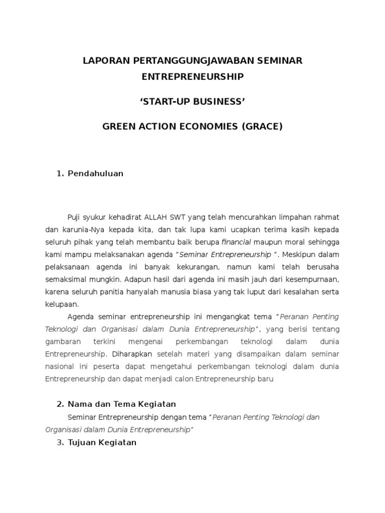 Contoh Laporan Hasil Seminar Kewirausahaan - Contoh Laporan / Berdasarkan hasil diskusi dengan perangkat desa serta pihak sekaa teruna teruni (kelompok pemuda desa) beserta penjual di pujasera maka disepakati bahwa .